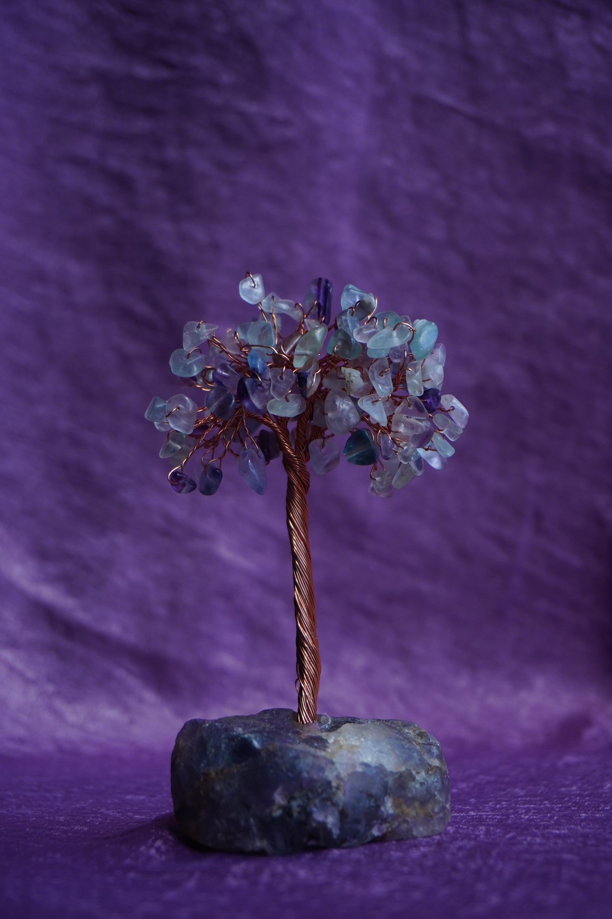 Vibrant Fluorite Crystal Tree: Handcrafted with Copper Wire Brilliance!