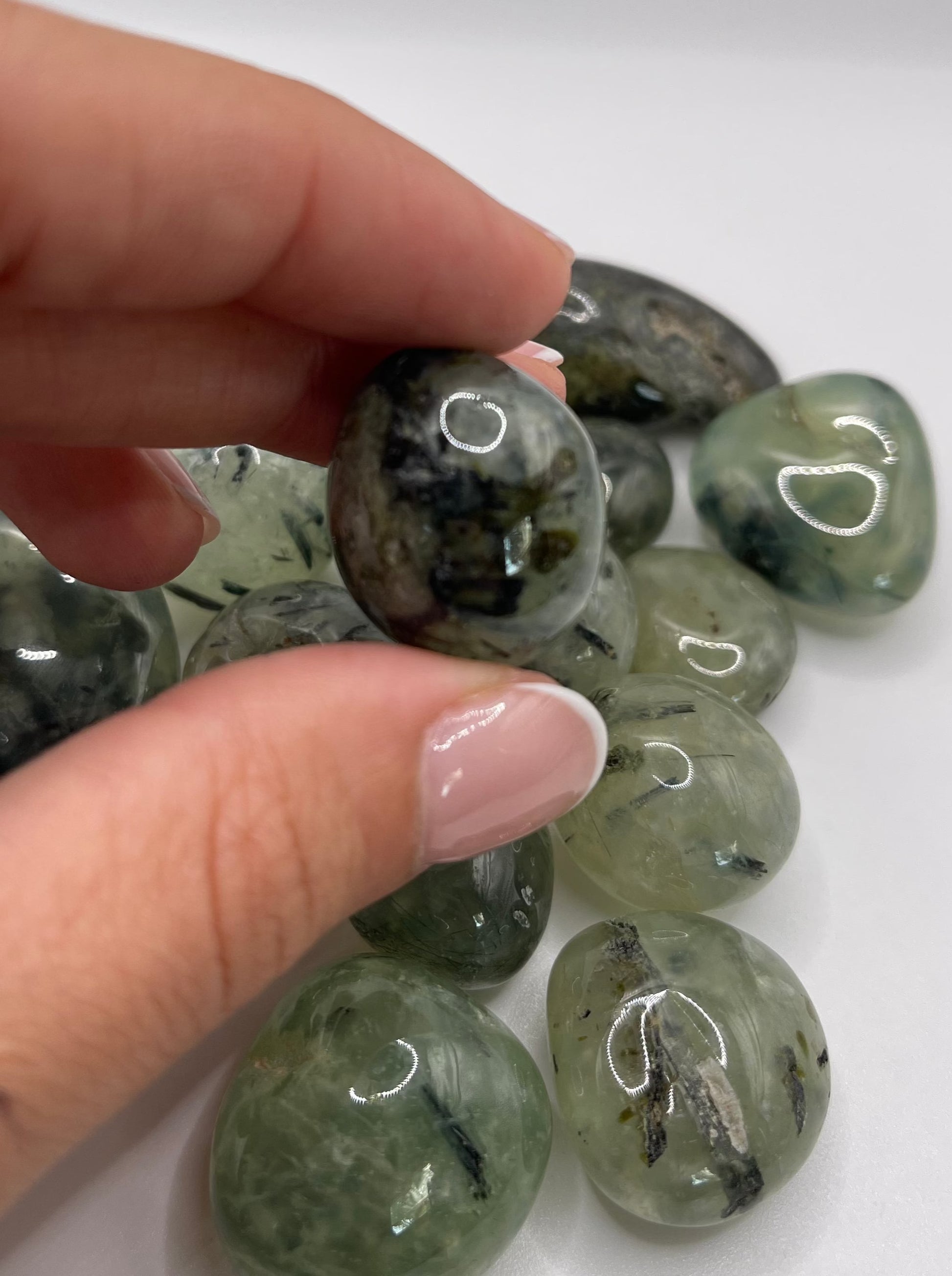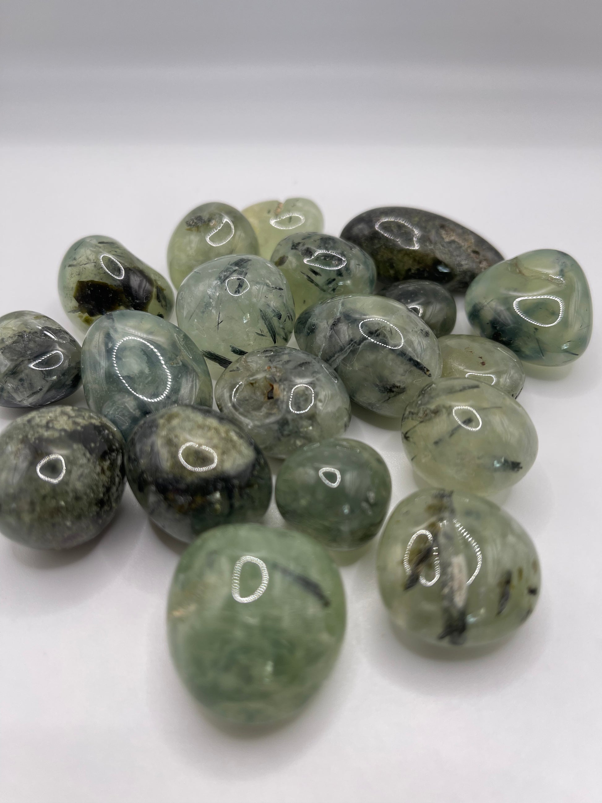 Prehnite with Epidote, a powerful combination of two healing stones, has been revered since its discovery in the 18th century by Dutch mineralogist Hendrik Von Prehn. Prehnite, often called the "Stone of Prophecy," is known for its ability to enhance intuition and spiritual growth. Epidote, with its deep green hues, amplifies the properties of Prehnite, offering additional protection and grounding. This crystal resonates with the Heart and Solar Plexus Chakras, promoting healing, emotional balance, and personal power. Ideal for meditation, crystal grids, and energy healing, Prehnite with Epidote enhances spiritual practices and fosters a sense of protection and inner peace.