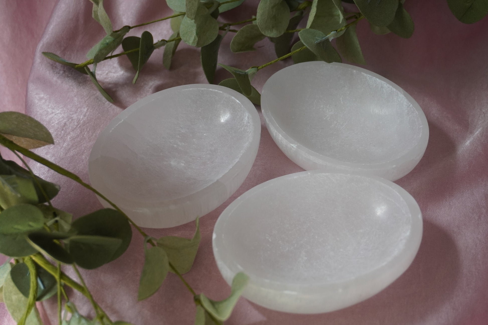 Oval Selenite Bowl (Satin Spar): Cleansing and Clarity