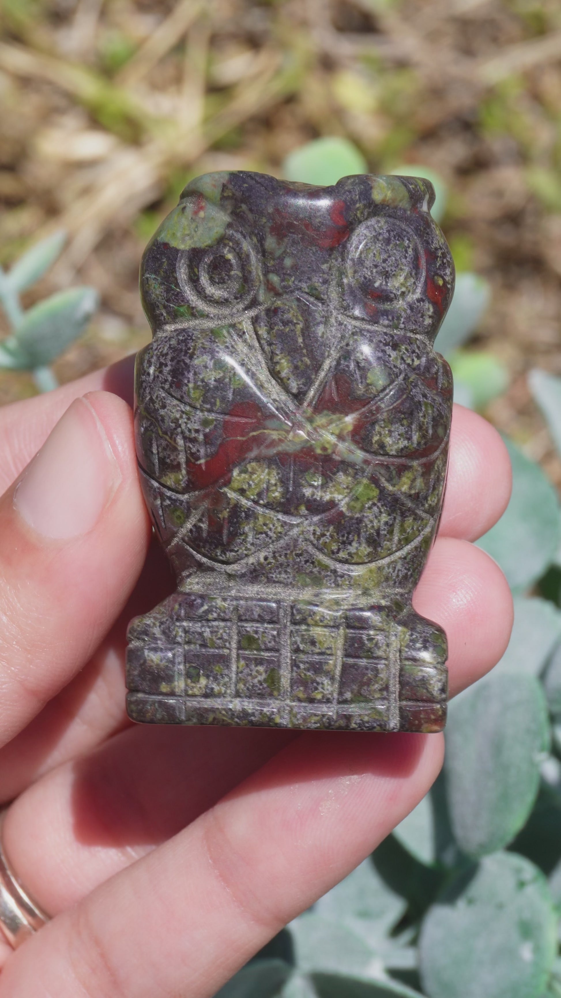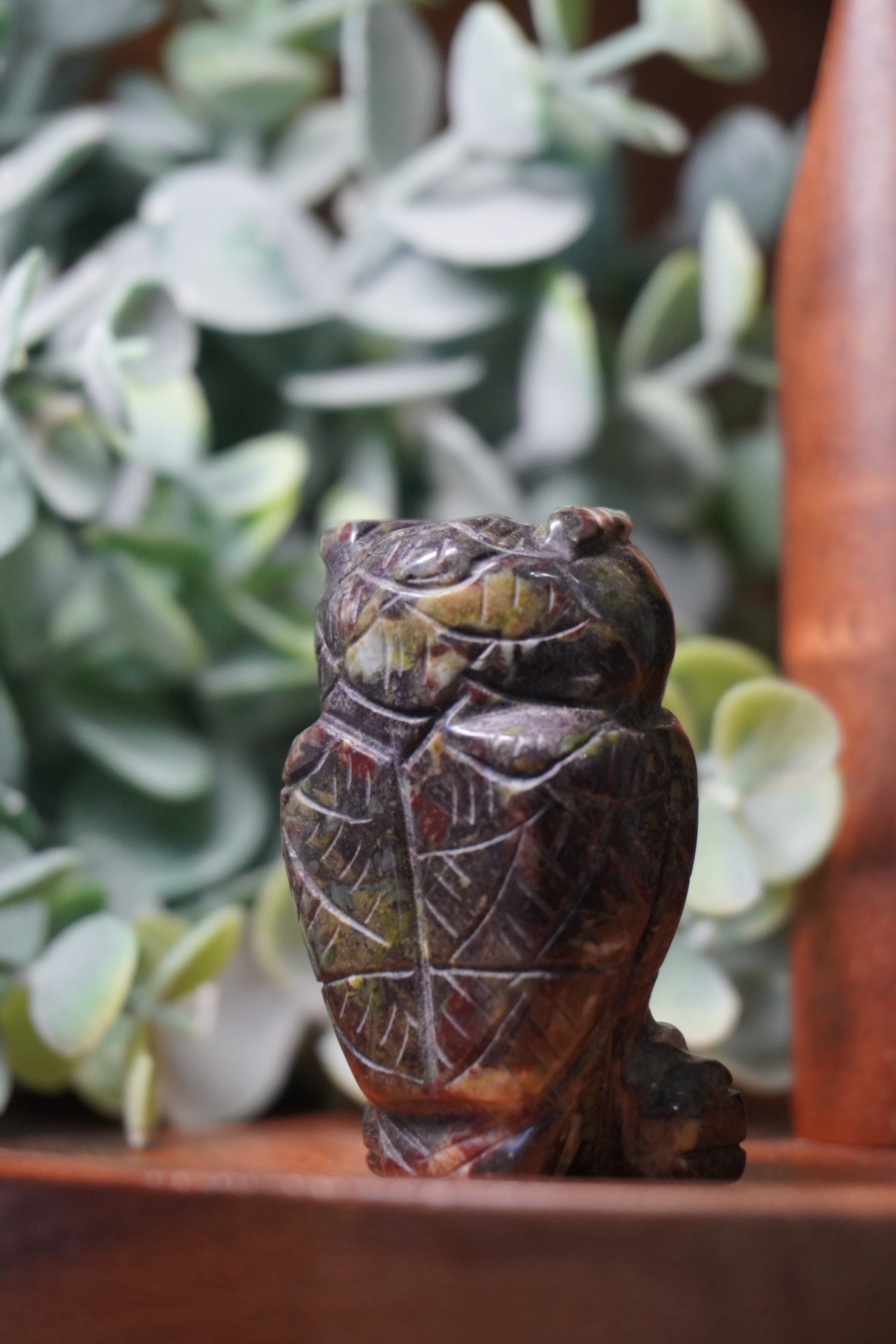 Bloodstone Owl Carving: Healing and Protection