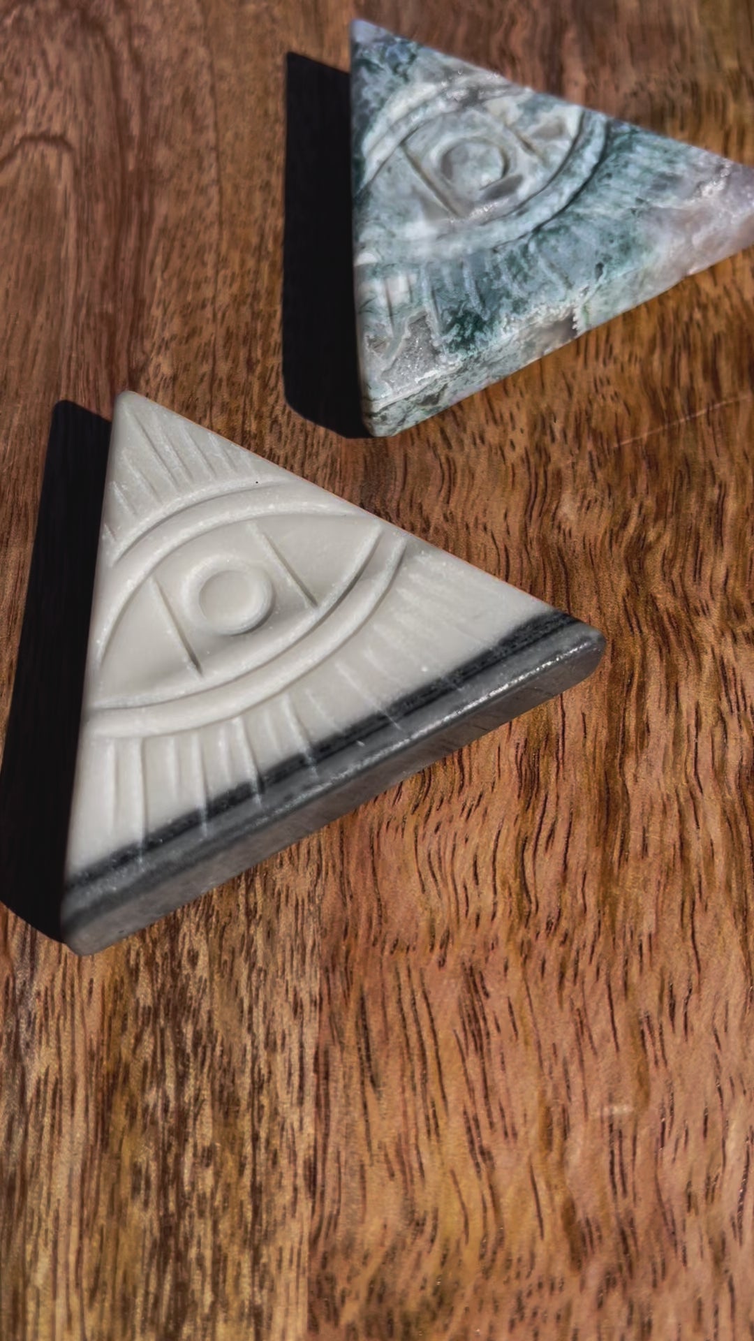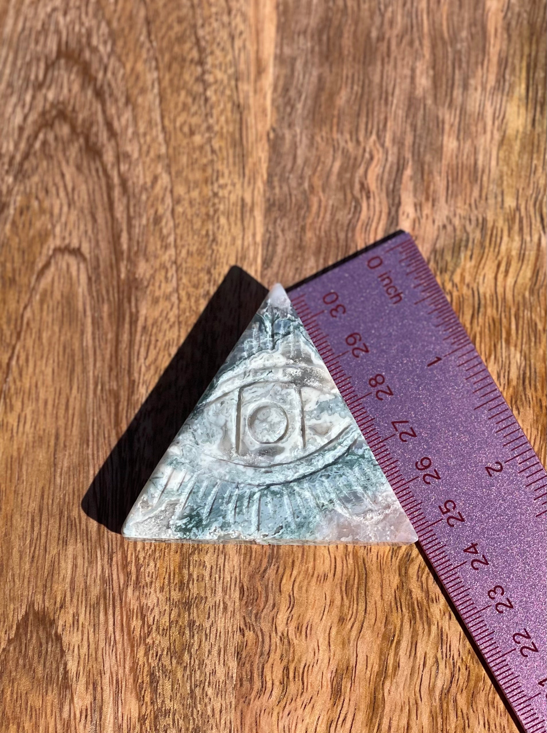 Sacred Symbolism: Eye of Providence Carving in Moss Agate and Taiji Jasper Crystal