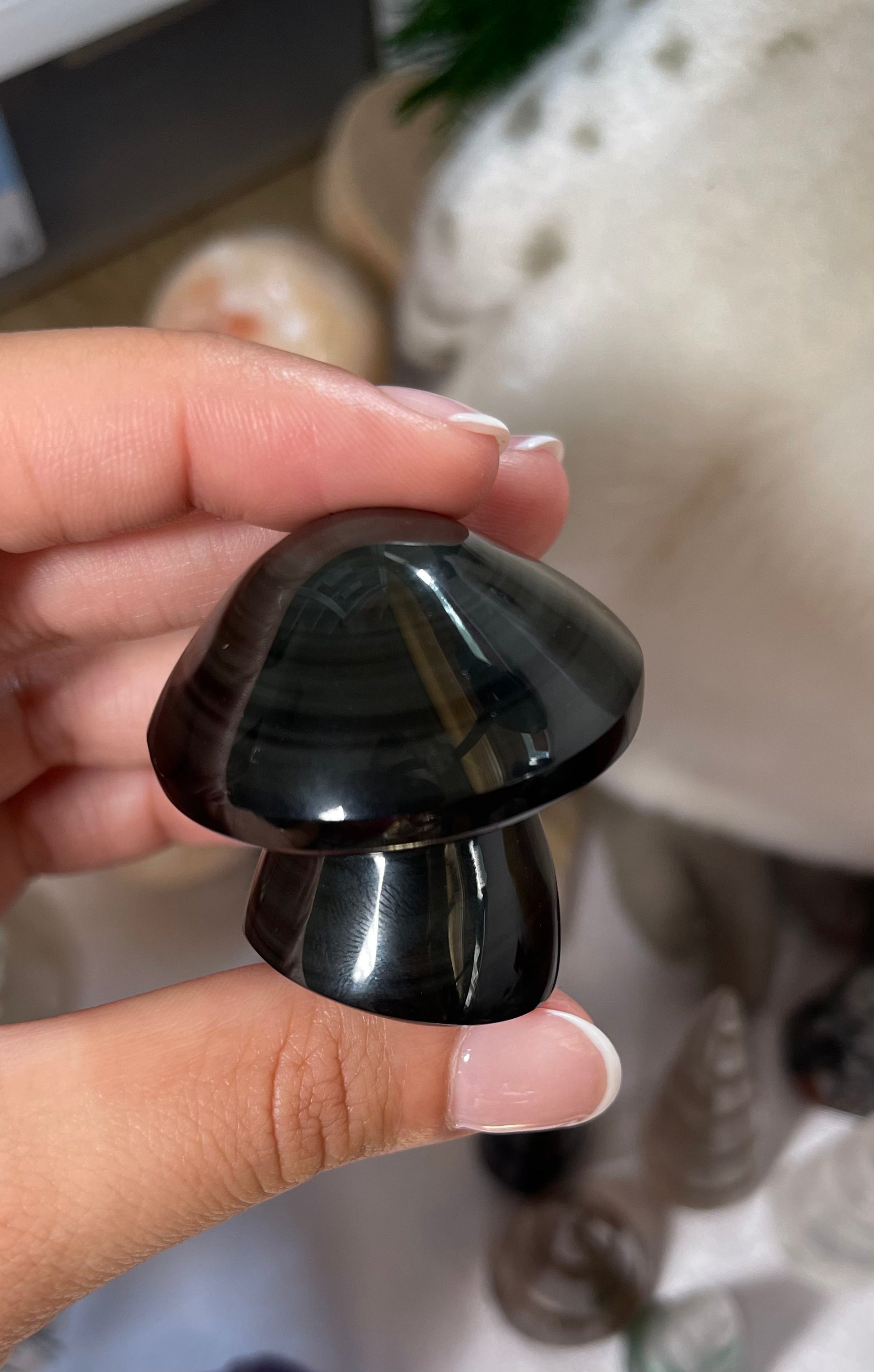 Silver Sheen Obsidian Mushroom Carving (Small) Approximately 1.5"